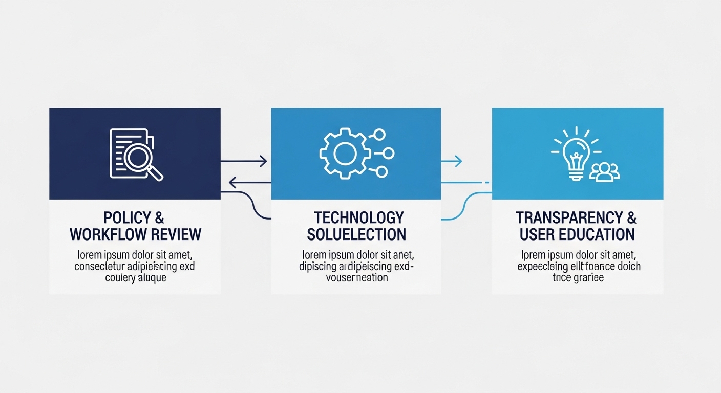 가장 먼저 해야 할 일은 조직 내에서 AI 콘텐츠 생성에 대한 명확한 정책을 수립하는 것입니다. 어떤 AI 도구를 사용할 것인지, AI 생성 콘텐츠임을 어떻게 명시할 것인지, 어떤 정보를 디지털 출처 메타데이터에 포함할 것인지 등을 미리 결정해야 해요. 콘텐츠 생성 워크플로우에 디지털 서명 또는 블록체인 기록 단계를 포함시켜야 합니다.